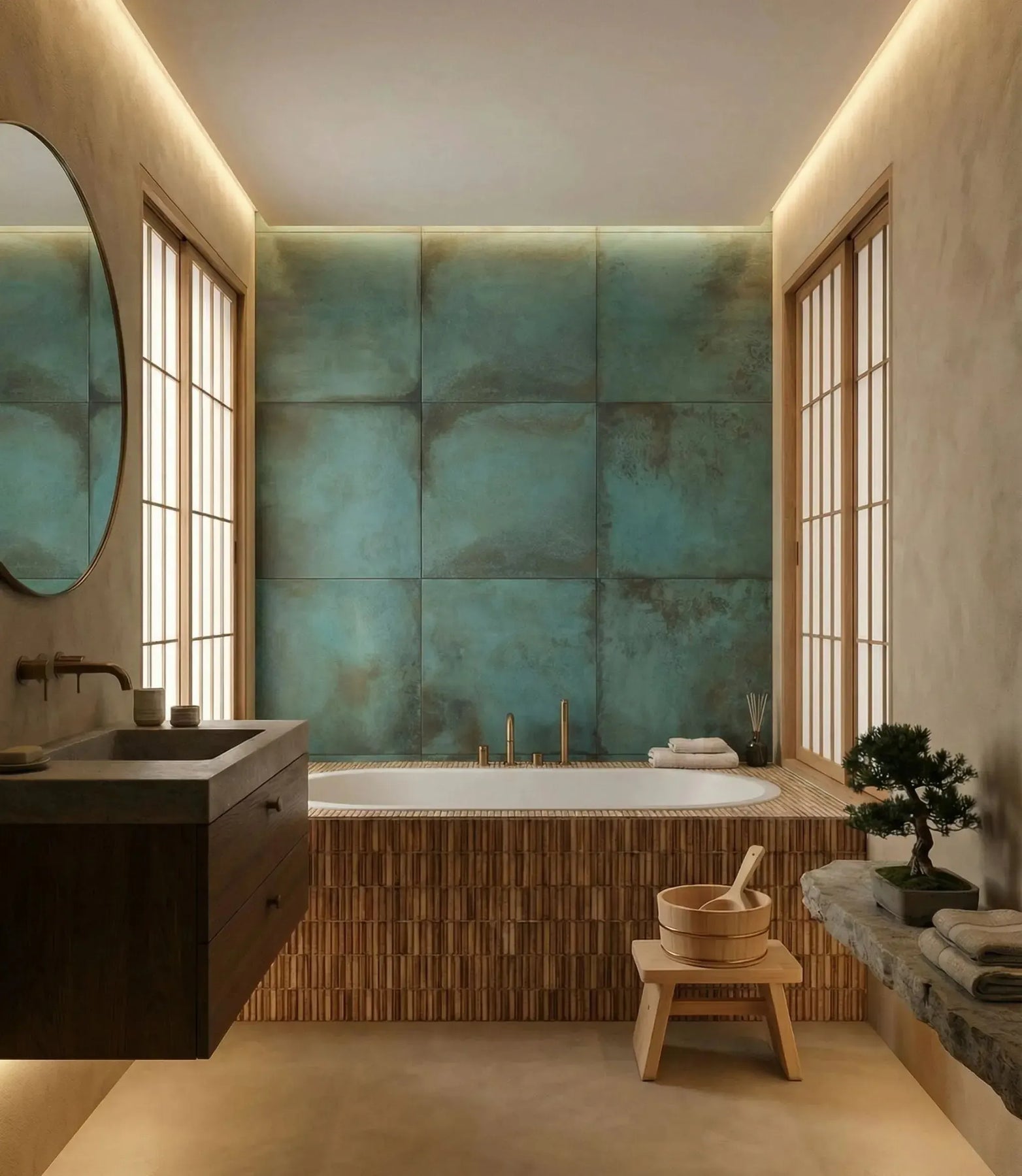 The Metal Work Verdigris tile captures the captivating essence of weathered metal, bringing a unique patina effect to your space. With its striking blend of oxidized blue and verdant green hues, this tile offers a rustic-industrial vibe that's perfect for creating dramatic feature walls or expansive floors.