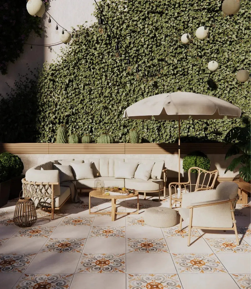 Step into a realm of timeless elegance with the Alfresco Savannah 20mm Paver. Measuring 61 x 61cm, these outdoor pavers showcase a softly aged medallion motif, gracefully blending rich terracotta and deep charcoal tones. This exquisite combination of colours and patterns brings a sense of warmth and character to any garden setting, making it perfect for both contemporary and traditional landscapes.